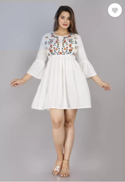 Casual Bell Sleeves Embroidered Women White Top