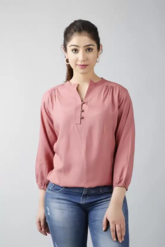 Casual Regular Sleeves Solid Women Pink Top