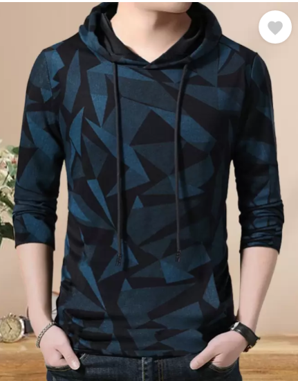 T410 Men Printed Hooded Neck Blue, Black T-Shirt